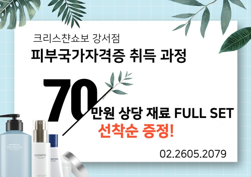 피부국가자격증 재료 FULL SET 선착순 증정! 페이지 정보 작성자 크리스챤쇼보 강서캠퍼스 조회 393회 작성일 2022-01-24 16:42 본문 피부국가자격증 재료 FULL SET 선착순 증정!문의는 02.2605.2079 SNS공유 목록 메이크업 국가자격증 한번에 합격하는 팁 ! 크리스챤쇼보 강서점 메이크업국가수업 22.01.28 헤어국가 취득하고 취업/창업 빠르게! 합격보장 헤어국가자격증 과정! 22.01.21